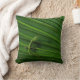 Esta almohada en las sombras diversas del verde, características una foto de pequeño, verde, lagarto del jardín (Carolina Anole) en una fronda de la palma.