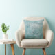 Preciosa almohada de Navidad azul hielo con Let it Snow en el centro y un diseño de copos de nieve.