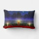 Una escena navideña en 3D creada en Vue, con velas puestas en rojo frente a una guirnalda de pino acentuada con adornos rojos y dorados. En el fondo nevado hay abetos azul-verdosos contra un cielo fractal arremolinado salpicado de estrellas. Una sola estrella brillante domina el cielo nocturno.