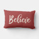 Creer escritura a mano | Cojín decorativo de vacaciones en rojo y crema. Diseño moderno de tipografía de una casa de campo por Blackberry Boulevard "Believe" escrito en una fuente de escritura de color crema sobre un sólido fondo de color rojo. Coordina con la colección de Navidades costeros. Otros colores disponibles en la tienda. Una almohada de acento perfecta para su decoración de vacaciones.