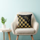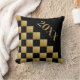 Una almohada negra decorada con piezas cuadradas doradas (similares a un tablero de ajedrez) que incluye el número del año que te gusta o el número del año nuevo como una especie de saludo de Año Nuevo, que se puede modificar como quieras.
