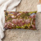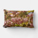 La almohada perfecta para la primavera. Flores de cerezo rosado contra el cielo azul. almohada lumbar. El mismo diseño adelante y atrás.