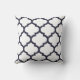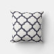 Almohada de Quatrefoil de los azules marinos y del blanco. Hecho en los E.E.U.U. del algodón o del poliéster más de alta calidad. Almohadas de tiro decorativas con un modelo del enrejado del quatrefoil en colores modernos. Disponible en tres tamaños, perfeccione para la sala de estar, la sala de estar o el dormitorio.