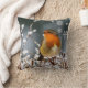 Decora tu espacio con esta almohada de pájaros cantores de invierno. Esta almohada fue diseñada a partir de una imagen de dominio público de un petirrojo posado sobre un arbusto cubierto de hielo. El fondo gris complementa el color naranja del pájaro. Agregué copos de nieve gráficos en la esquina superior derecha para agregar interés a esta almohada.