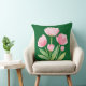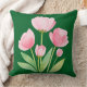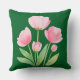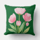 Tulipanes rosados en acuarela sobre un fondo de color verde profundo primaveral. Nuevo diseño. Acento de primavera para cualquier habitación