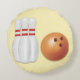 Imágenes de las bolas y de los pernos de bolos en ambos lados en un fondo poner crema. Usted puede modificar para requisitos particulares a sus propias ideas y colores. diy