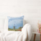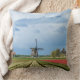 Almohada de tiro con un paisaje con un molino de viento y tulipanes amarillos y rojos debajo de un cielo nublado en el campo holandés en un día hermoso de la primavera en la región del bulbo, los Países Bajos.