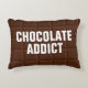 Almohada de tiro marrón divertida del adicto al chocolate. El amortiguador divertido con el chocolate oscuro bloquea diseño del modelo. Plantilla intrépida grande de la tipografía para la cita conocida o chistosa. Consiga uno para él. Accesorios caseros de moda de la decoración para la silla, el sofá o la cama. Ideas de la diversión para la nueva casa, la cocina, más chocolatier, café, restaurante, negocio, tienda del caramelo, transferencia de la tienda etc. de los dulces este diseño fresco a cualquier otro producto en Zazzle. Personalizado le con un nombre. Ideas del regalo de la novedad para los amigos y la familia.