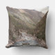 Almohada de tiro con el río de Urubamba a través del valle sagrado rodeado por las montañas que corren de Cusco hacia Machu Picchu en Perú.