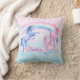Almohada de unicornio con hermosos unicornios de acuarela pastel en un fondo de arcoíris y nubes. Esta dulce almohada de unicornio se personaliza fácilmente con el texto que elijas.