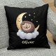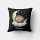 Esta adorable almohada decorativa personalizada presenta un erizo bebé lindo acurrucado durmiendo en una nube suave bajo una luna creciente con estrellas brillantes.