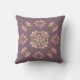 Almohada con ilustración gráfica de ornamento rosa pastel y verde sobre fondo oscuro.