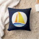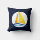 Esta almohada náutica presenta un fondo de cuero naval falso con un velero colorido moderno en el centro. Una almohada elegante para una casa, oficina, casa de playa o dormitorio de niño con tema náutico. Una almohada decorativa como esta sería un regalo considerado para estrenar casa o un regalo para cualquier hombre que ame los veleros.