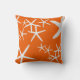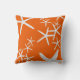 Almohada con diseño de estrella de mar blanca. Naranja caqui brillante con una dispersión de estrellas de mar de todos los tamaños. Elija una tela según sea necesario para uso interior o exterior. Ilumine una casa de playa / cabaña junto al mar o condominio junto al mar con este decoración única para el hogar. Este diseño también viene en una variedad de colores.