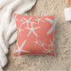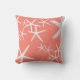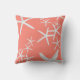 Almohadón grande y cuadrado con estrella de mar blanca y delgada sobre un color rosa salmón / rosa coral en ambos lados. El tema de la vida marina y la naturaleza es decoración perfecta para cualquier casa de playa, condominio junto al mar o para agregar un toque de verano a tu hogar.