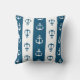 El ancla náutica oscura clásica del azul marino y blanca modela la almohada de tiro decorativa con las rayas anchas del vintage. Completamente adaptable, añada su propio texto o foto para un artículo casero verdaderamente único de la decoración, perfecta para un cuarto de niños.