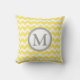 El galón amarillo limón, gris y blanco brillante elegante y moderno zigzaguea almohada de tiro decorativa del monograma de encargo del modelo de las rayas. Completamente adaptable, añada su propia inicial para un artículo casero verdaderamente único de la decoración.