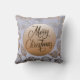 almohada decorativa Feliz Navidad con un patrón de efecto satinado irrisorio en tonos bronce.
