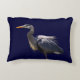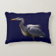 Esta almohada decorativa del acento ofrece la garza de gran azul, un pájaro que vadea grande en el Ardeidae de la familia de la garza, el cercano común las orillas del agua abierta y en humedales. Él es la garza norteamericana más grande. Las características notables incluyen plumas de vuelo pizarrosas, muslos rojo marrón, y un rojo marrón y una raya negra emparejadas encima de los lados; el cuello es oxidado-gris, con rayar blanco y negro abajo del frente; la cabeza es más pálida, con una cara casi blanca, y un par de negro plumes el funcionamiento de apenas sobre el ojo a la parte posterior de la cabeza. Las plumas en el cuello más bajo son largas y penacho-como. Porque ésta es la estación de la cría, él también tiene penachos en la cuenta más de espalda y anaranjada. Sus plumas son hecha excursionismos por la luz del sol luminosa.