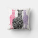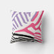 Convertido a partir de la una de nuestras fotografías originales, un retrato colorido de la plantilla de una cebra. Las cebras produjeron en negro, rosado, y púrpura. La parte posterior de la almohada ofrece las rayas de la cebra en rosado, púrpura, y negro.