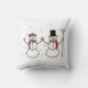 Esta almohada tiene los muñecos de nieve y copos de nieve que caen.