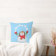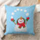 Esta almohada se muestra en azul con una impresión del muñeco de nieve del día de fiesta del navidad.