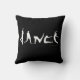 La almohada tiene la palabra "danza" deletreada con las siluetas del baile de la gente en actitudes de la danza.