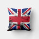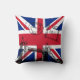La característica de la almohada del puente de la torre un gráfico del puente de la torre y un vintage Británicos sella. El fondo es una bandera de Union Jack. El diseño y el gráfico creados por gráfico adivinan.