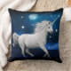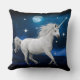 Diseño de la almohada de la impresión del arte del unicornio del tema del claro de luna. Idea bonita de la almohada del acento con arte digital del caballo del unicornio.