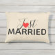 Una forma agradable de celebrar la ocasión importante. Esta almohada decorativa presenta un motivo clásico, pero elegante, de "recién casados".