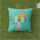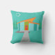 Esta casa de Personalizado de la edad espacial Pillow es el sueño de un amante retro que se hace realidad. El diseño de arte minimalista cuenta con una casa de piedra acuática con grandes ventanas de color azul pavo real. Colgado desde el techo atómico, inclinado y naranja, una luz sputnik amarilla ilumina la puerta delantera. El pomo de la puerta roja de la entrada, que está empotrado con estribos, queda bellamente compensado por los tablones verticales de madera verde de la entrada exterior. Un camino de piedra gris atraviesa el césped prístino, que parece turquesa a la luz de la luna. Detrás de la casa, una hilera de grandes y delgados árboles apuntan al cielo turquesa y a la silueta blanca de una luna llena. Aunque no hay personas visibles, en una noche como esta, los habitantes de la casa kitschy probablemente están dentro viendo las imágenes de las noticias de los astronautas.