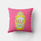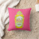 Esta almohada ofrece una pintura original de la acuarela del artista Anne Harwell de un tarro inglés antiguo de la porcelana en detalle delicado con amarillos y verdes en un fondo de color rosa oscuro. El diseño está en frente y la parte posterior