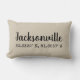Jacksonville y sus coordenadas geográficos se imprimen a través de esta almohada lumbar en un viejo tema compuesto tipo y rústico de la máquina de escribir. La fuente negra pone en contraste agradable contra la tela de lino poner crema natural que da a la almohada una apariencia vintage y una sensación hermosas. La almohada de los coordenadas es un tamaño perfecto para una silla sola del soporte en una guarida, oficina, sala de estar o haría un toque final agradable en un asiento de la cama o de ventana.