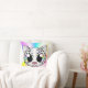 La cara de un leopardo lindo del dibujo animado en una almohada de tiro.