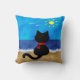 ¡Las características del este del gato negro diseño lindas de la almohada un gato negro que se sienta en una playa arenosa que mira las olas oceánicas y los pájaros que vuelan en el verano asolean!! ¡Una gran en cualquier momento idea del regalo para su amante preferido del gato!!