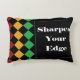 Eleva tu espacio con esta llamativa almohada lumbar. Cuenta con un audaz patrón de diamante de arlequín en rojo, amarillo y verde sobre un fondo negro elegante.