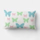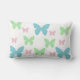 Mariposas rosas, azules y verdes en una almohada de tiro.