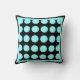 almohada moderna negra y azul turquesa círculos azul turquesa en una almohada negra
