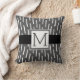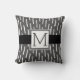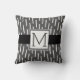 Esta almohada de acento personalizado monograma presenta un diseño en tonos grises y blancos en un estilo de moda moderno para la decoración de la casa. Derechos reservados Ann Powell.