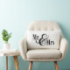 Añada los nombres de la pareja y la fecha de boda a la parte posterior de la almohada decorativa "Mr & Mrs." en blanco y negro.