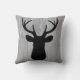 Almohada negra moderna y elegante de la cabeza de los ciervos con diseño de madera gris del modelo. La tendencia ultra caliente en los CIERVOS caseros de la decoración dirige siluetas. Añada esta almohada del decorador de la moda a su decoración existente para poner al día su estilo fácil y rápido.
