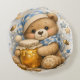 Agrega un toque de dulzura a cualquier habitación con esta adorable almohada redonda que presenta a un pequeño oso acogedor sosteniendo un frasco de miel. Rodeado de estrellas, galletas y detalles suaves para la hora de dormir, esta encantadora ilustración crea una atmósfera cálida y reconfortante perfecta para guarderías, habitaciones de niños o cualquier persona que ame la decoración linda y caprichosa.