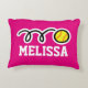 Chicas personalizados almohada con diseño adorable de softball de juguete amarillo. Decoración de la casa temática deportiva con nombre o monograma de niño. Impresión suave con colores ondulados para la guardería de bebés, dormitorio para niños o sala de juegos con sofá / sofá. Adecuado para niños y chicas. Color del fondo del personalizable, es decir, azul o neón rosado. Idea deportiva de regalo de cumpleaños para hijo, nieto, nieto, nieta, nieta, hija, sobrino, etc. También es genial para entrenador, jugador y aficionado. Crea tu propio equipo para compañeros de equipo o decoraciones de la casa del club. El ilustracion caprichoso.