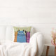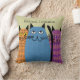 Almohada jubilada del bibliotecario. Tres gatos adorables cada uno del arte popular con una expresión diffrerent. Detrás de la almohada en colores de coordinación con apenas el gato azul que se sienta en una pila de libros. gráficos del *All creados por el artista Gail Gabel*