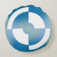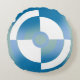Almohada redonda personalizable con diseño circular abstracto en azul claro, verde y blanco en la parte frontal y posterior