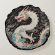 Esta almohada redonda presenta un dragón de estilo asiático blanco y nubes sobre un fondo negro.