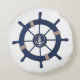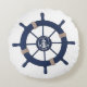 almohada redonda de la rueda azul de la marina. Decoración de casa en la playa con casco náutico.