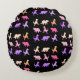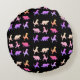 Patrón de dinosaurios coloridos en almohada redonda de polyester cepillado personalizada. Fondo negro - fácil de personalizar.