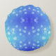 Almohada redonda en forma de medusa con gradiente de azul y verde agua con lunares blancos. El diseño es juguetón y caprichoso, evocando una sensación de tranquilidad.