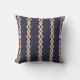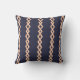 Hay un ambiente definido "60s" a esta almohada del modelo de zigzag en una terracota amelocotonada en un fondo azul profundo.